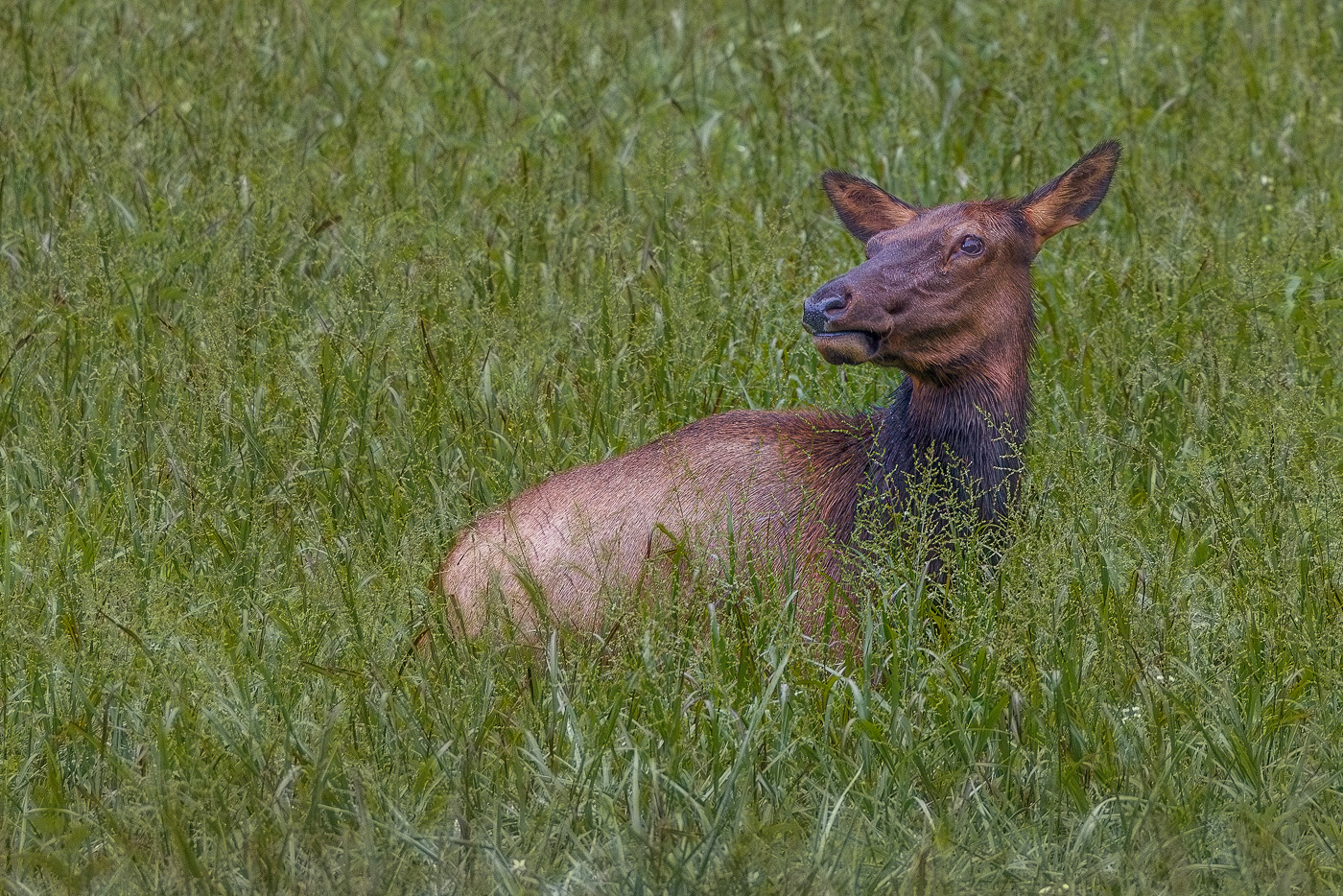 Barbara, nice image of the female Elk, but I think that in the original de color balance is better with darker greens. In ACR I adjusted it accordingly. The image is sharp. and the placement of the Elk in the frame is good |