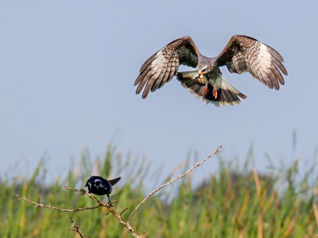 Erik, this black boat tail grackle bird is really adventurer to try to take the Crested Caracara. I have seen them riding on the head of the Raptors to make them go away from their nearby nests. Again, like the image from last month, it is a timeless picture. It takes eyes, skills and speed to capture it. It is sharp and nicely composed. |
