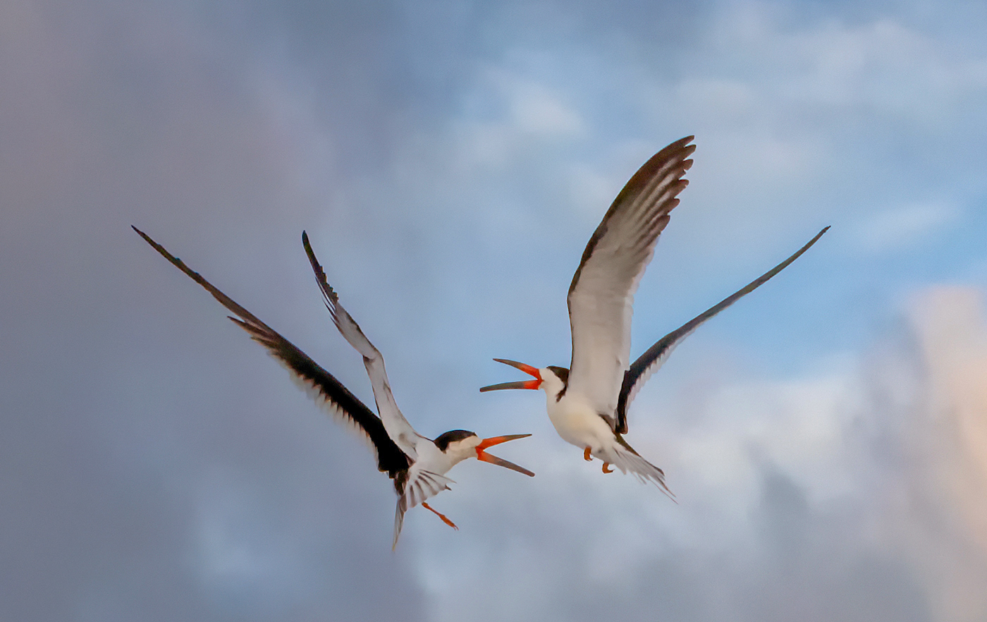 Erik, another nature great shot. both birds are in foccus, with open mouth and with a non distracting background with a few clouds which is better than a just plain blue sky. Using the masking brushes in ACR I just added a little light to the birds, and a touch of dehaze to the sky. |