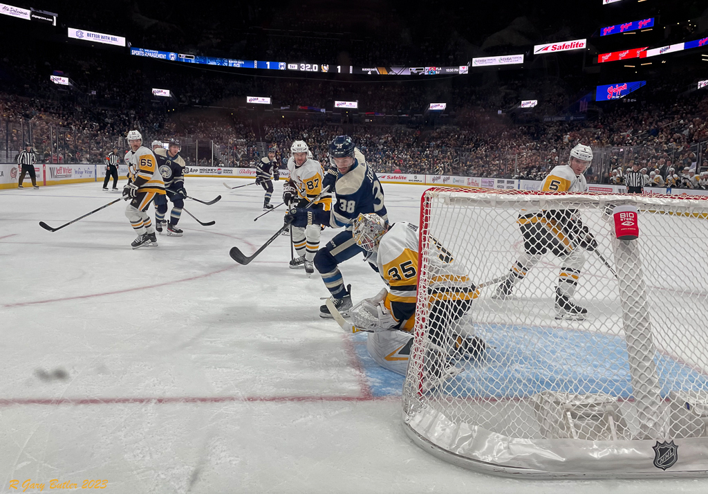 The image is sharp with a shutters speed of 1/267 on this super fast sport. Great action capture at peak time. I only lowered slightly the brightness on the ice and now we can see the scratchs left by the skies on the ice as well |