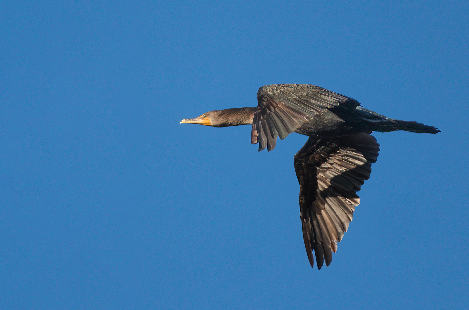 Randall , good BIF image, captured with only 1/1600 sec @ 840 mm, which is a great accomplishment being so sharp. About the dark shadow , there is only so much you can do to keep the image looking natural and real, knowing the light conditions. I believe there is room for a little adjustment adding light to the shadows so you can see a little more detail in the darks. Much more light would make tha image very nosisy in the darks and unrealistic. BTW, I added a little more real state in the front of the bird to take him off center and give more space to fligh into. |