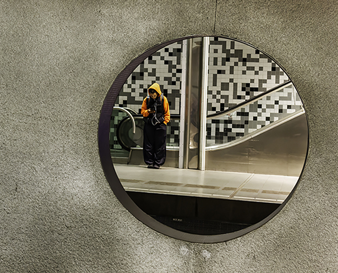 Bruce, interesting image for sure, you were pretty far away as shown on the original image. Your PP brought out detail in the man standing on the other side of the subway platform. I think your crop used has a lot of empty space overpowering the circle and man in the other side. A tighter crop makes the circle and man stand out better. You had 200 mm reach, but you used the widest setup of 28mm. My guess is that you did not have time to think and change your settings. This is a real shot from the hip !! |