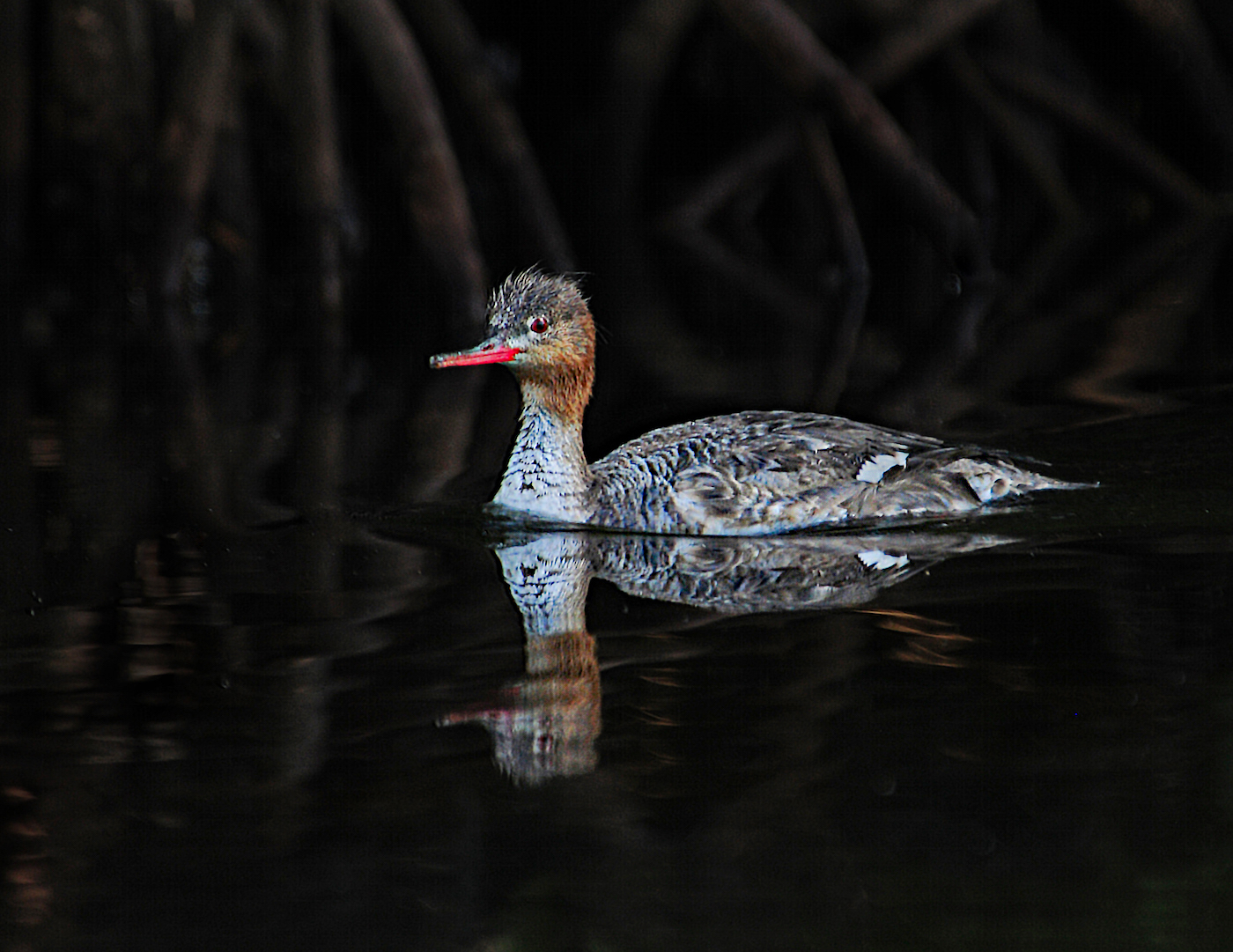 Jim, nice pair of Mergansers. Lots of reflections in the water that perhaps could have been avoided somehow using a polarizing filter, which is always in the wrong place and not with you when needed. |
