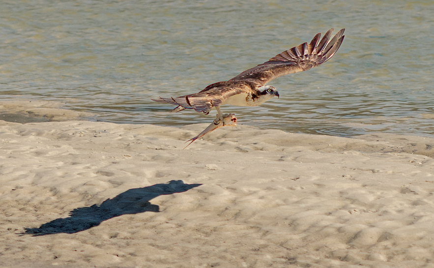 Grace, great capture of a BIF. The first thing the Osprey does once it catches a fish is to park somewhere and rip off the head, which was already done here. The image is sharp but it lacks contrast. The light is harsh therefore the intense shadow. I adjusted the contrast and cropped it additionally to remove some of the empty space, and still leaving enough space in the front so the bird can fly into. |
