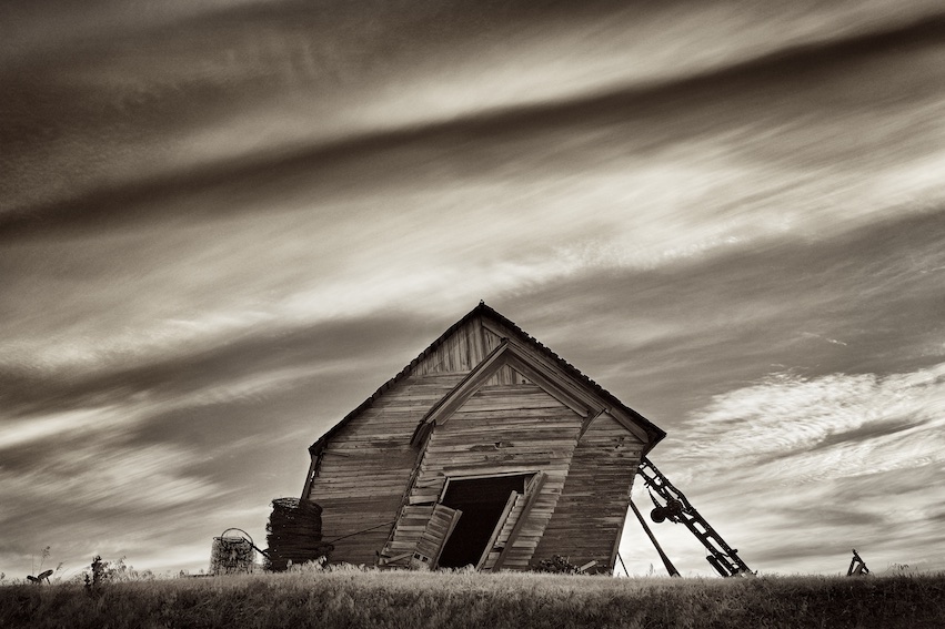 Melanie, I have to admit I'm feeling like Gary on this one, and to me, it's the bits of brown shades, as in the front of the house, the wood, the little shed, that don't quite work. For me, I'd like to see a touch of subtle red on the walls of the house, and everything else black and white. But that's my preference stylistically, strictly FWIW. I like the idea, and used to play around with it a lot, but found its very tricky to get just right! |