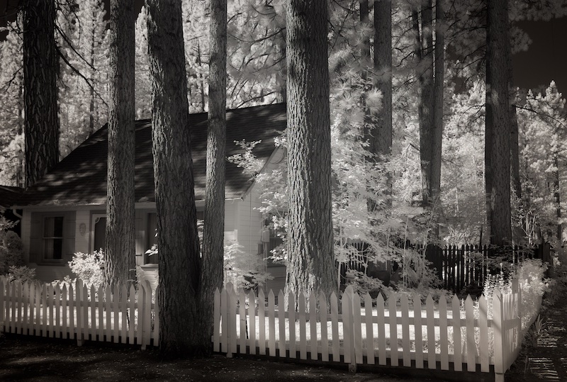 I think it still works as IR Charles, for me, the bits of white foliage give it that bit of whimsy. But for me it's the composition that feels like it's not perhaps the best crop. The beautiful reflection seems to be the subject, but then the foliage and fence on the right are also interesting, so to me it does really come together, or flow as far as the eye moving around the scene goes. I'm thinking a crop of the middle, or the right side, might work better. |
