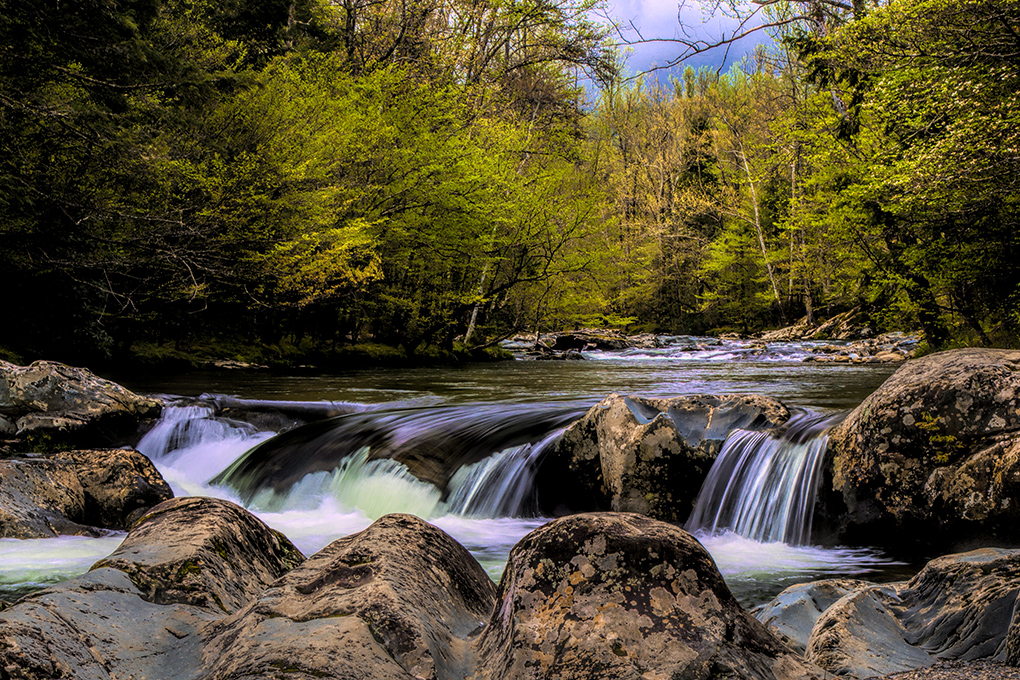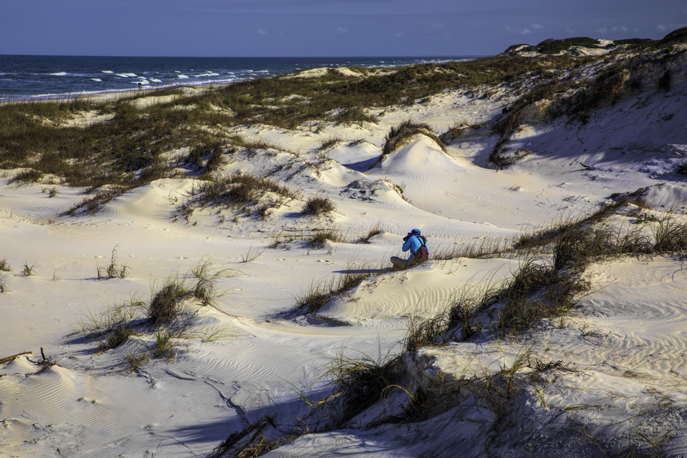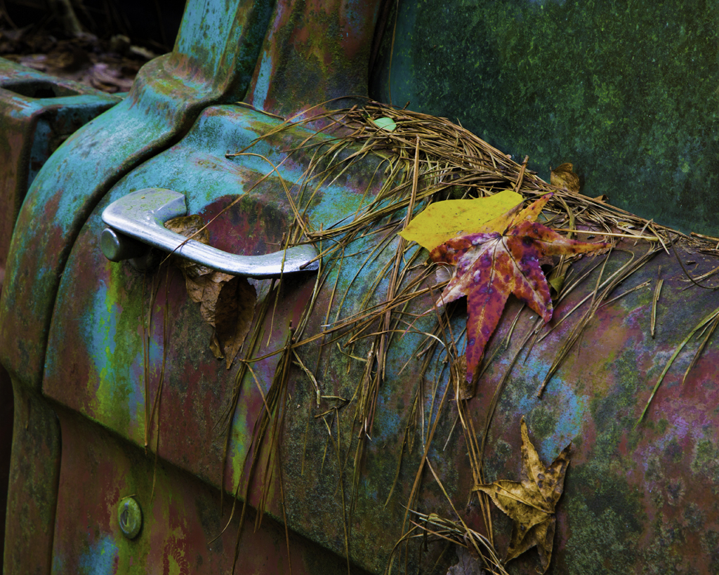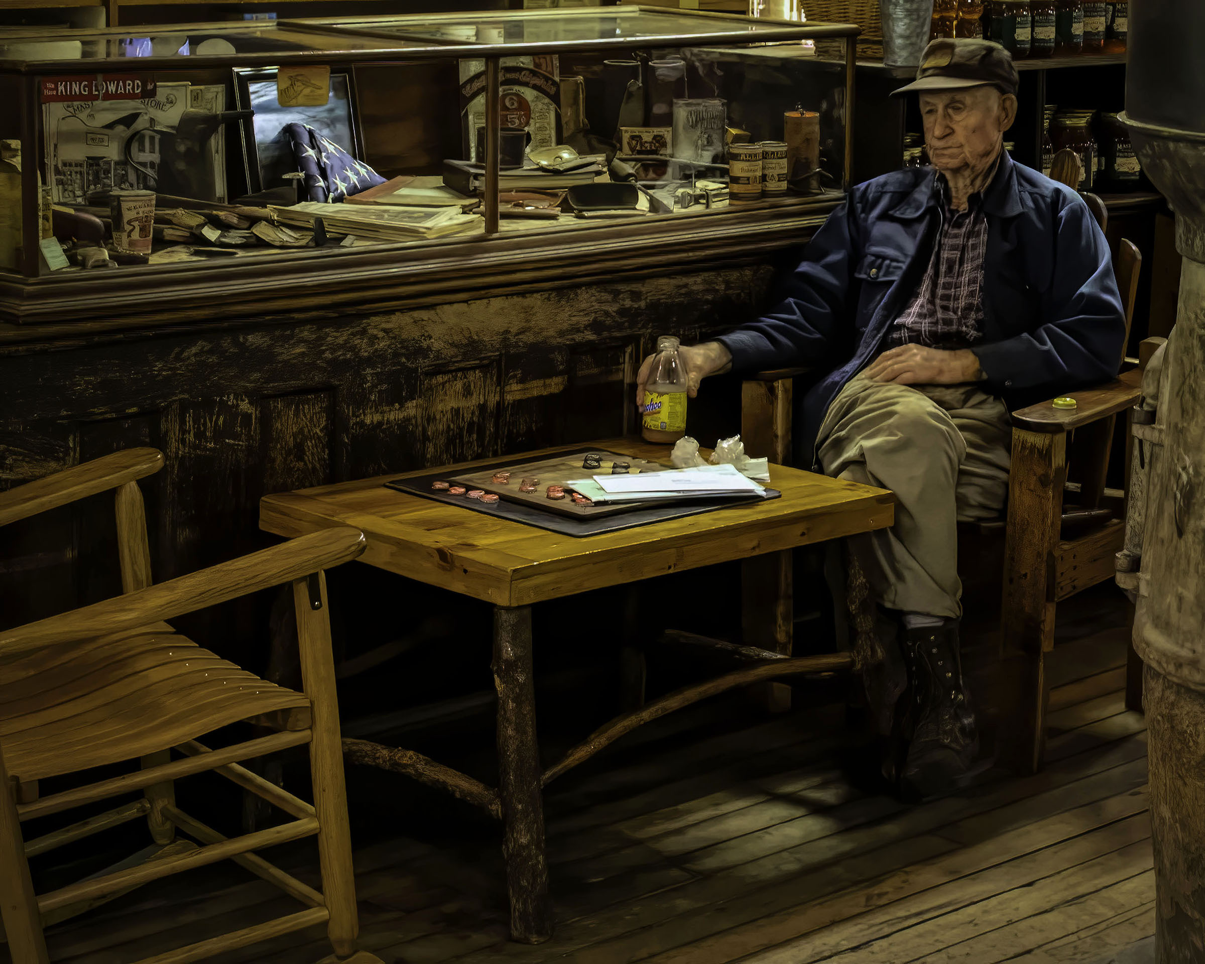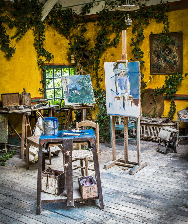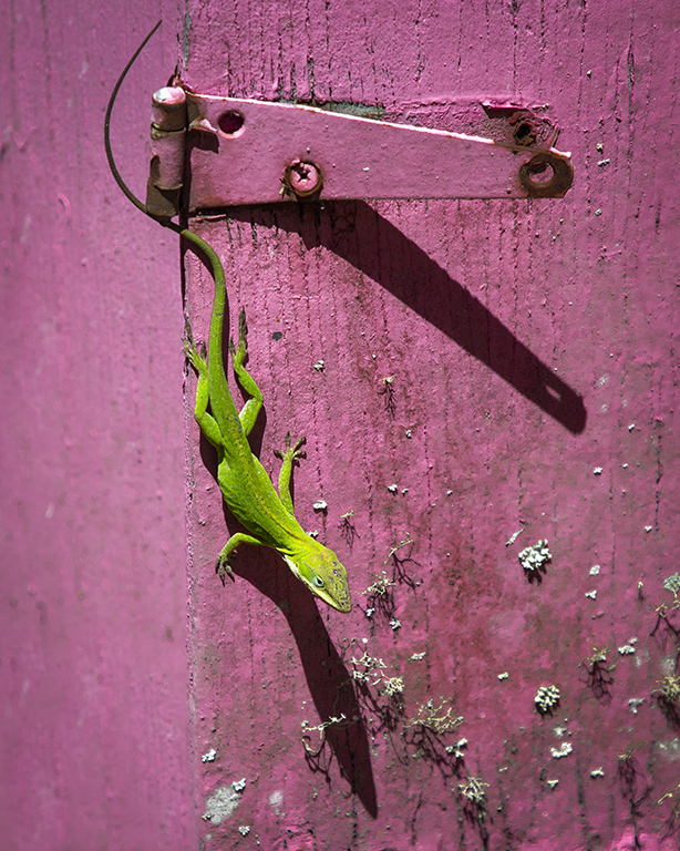 Dog is sharp and colorful and having the rest of the scene helps place where you are. Like the dog looking at you. |