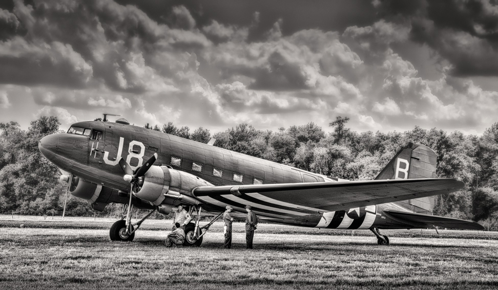 The details of the plane are really enhanced by HDR. I agree with Kathy that the detailed background (trees and clouds) gives it a flat look and takes away from the plane itself. I would also suggest cropping the driveway at the bottom of the image. In my VF, I softened the background and cropped the bottom. It's a good image and worth "tweaking"! |