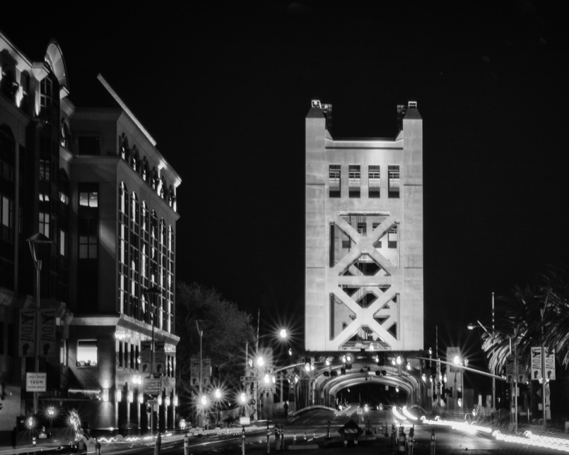 I, too, prefer the monochrome. This is a really nice night shot. Your exposure is wonderful and the starbursts on the lights are great. I like it very much. My only suggestion is in cropping. For my taste, I would refer the bridge were not centered and the small section of the building on the left doesn't add to the image. I would crop the left side and then flip it so your center of interest falls on the "rule of thirds" line on the right. |