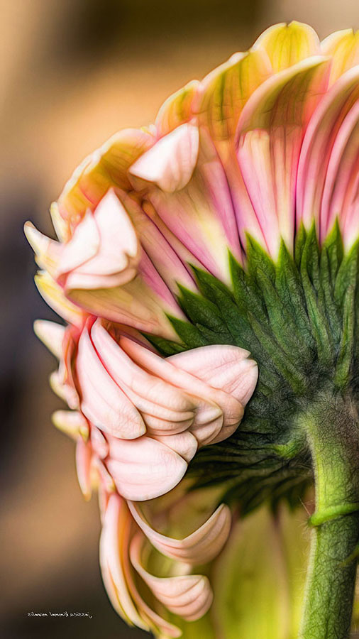 So soft and delicate. For me, your depth of field is perfect. Everything that needs to be in focus is and the blurred part of the flower in the upper right "grounds" the flower. Your lighting and colors are very nice. My only, very small, suggestion is to clone out (unless you are entering this in a nature competition) the small black dots on the flower and background on the far right. I know they are part of the flower, but in those very light areas, they seem to be floating. They are fine on the green part of the flower to the bottom right. Very nice job. |