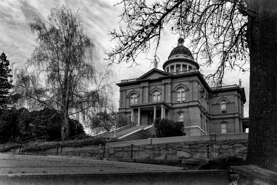 Great subject! I especially like the way you framed the building with the trees. You have nice tonal values, as well. My suggestion is to straighten up the house. I find it leaning quite a bit to the left. In my visual feedback, I went into PS Edit - Transform - Skew and straightened it some and then cloned out the three signs. |