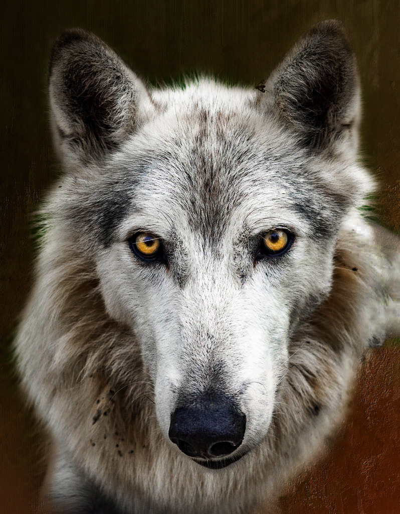 I really like this shot and his intense eyes. The gold color of his eyes are really captivating. Great details and a nice crop with a straight-on pose that works. My only suggestion is to darken the background to really make him "pop". Love it!