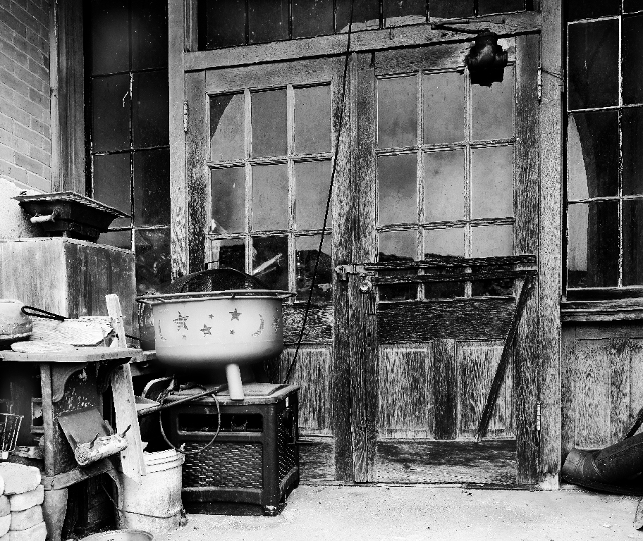 I'm always drawn to scenes like this. I think the monochrome works very well. You managed to keep the textures in the door, which, for me, is the point of interest that drew me into the scene. I would suggest adding moor contrast and crop out the busy lower right corner. |