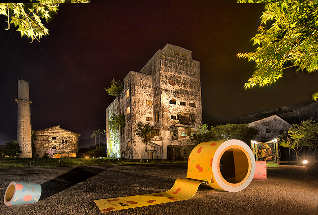 You achieved good contrast and colors in this night scene. I agree; the contrast between the modern art objects and the old, weathered building is very interesting. I am trying to decide if the skew of the building and tower on the left add to the image or not. I straighten them, but couldn't do the same with the blue roll of tape. See what you think. |