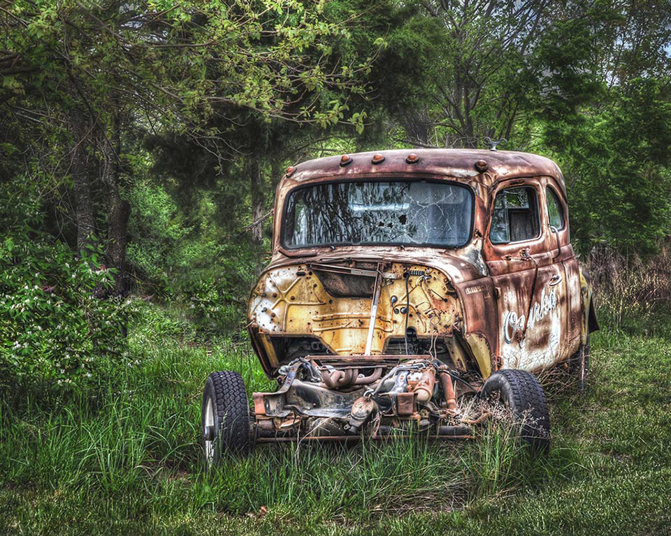 I love old rusty things and this is a good find. Mary Ann was successful in removing the pixilation. I think the color version is a little stronger. I wish that you had stepped back a bit so there wan't a merger on the bottom. |