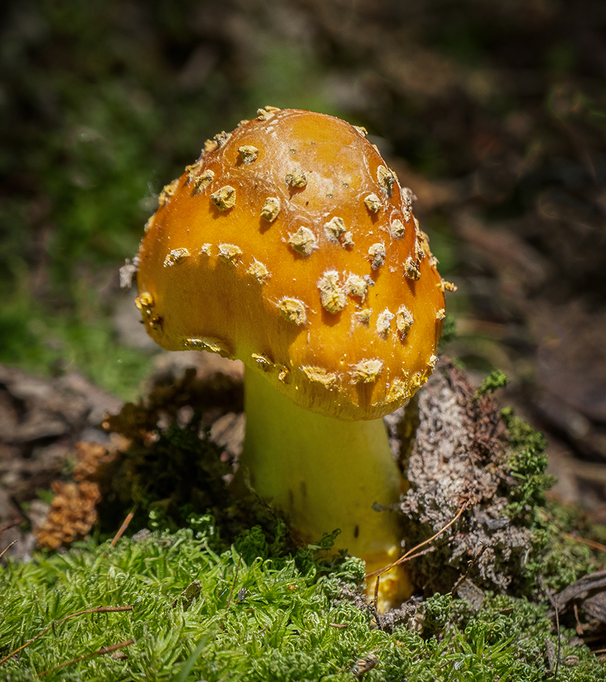 What a great find! It makes an interesting subject. I am glad that you shot it from this angle and got the green foreground. You have nice focus. I think the background could be darker, the white highlight on the top of the mushroom cloned out and cropped down slightly from the top. I also eliminated a few of the bright spots in the background. |