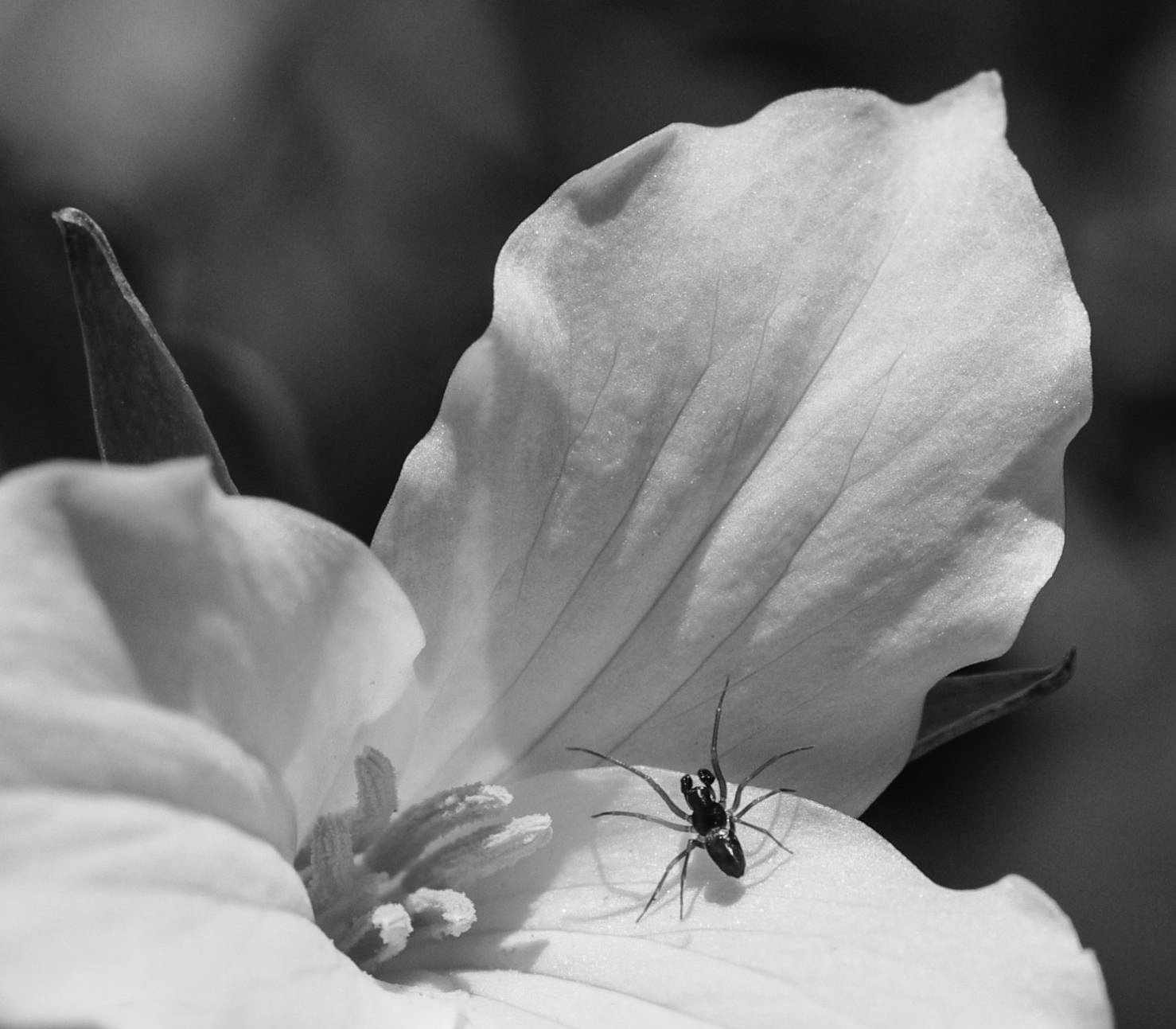 I like this nature close up very much. You have maintained nice detail in the white petals and the spider has great focus. The background is nicely blurred, too. I would sugest cropping out the lower left corner. In my edit, I also added a touch more contrast and clarity. |
