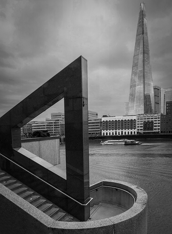 I think this is well done; the composition and contrast are right on. For me, it is an architecural shot, all about shapes and lines. I think a monochrome version highlights this more than color. I really like it! |