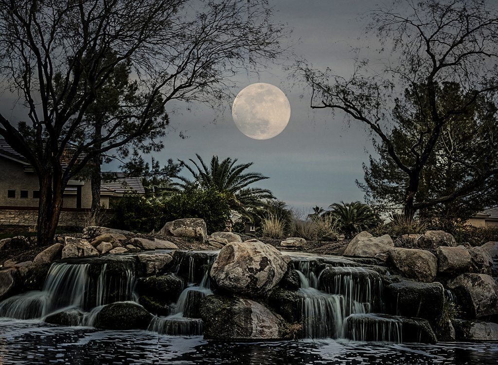This looks like a fine art piece. Your placement of the moon is good - centered between the tree branches which frame it nicley. I added some clarity and lightened it a little. |