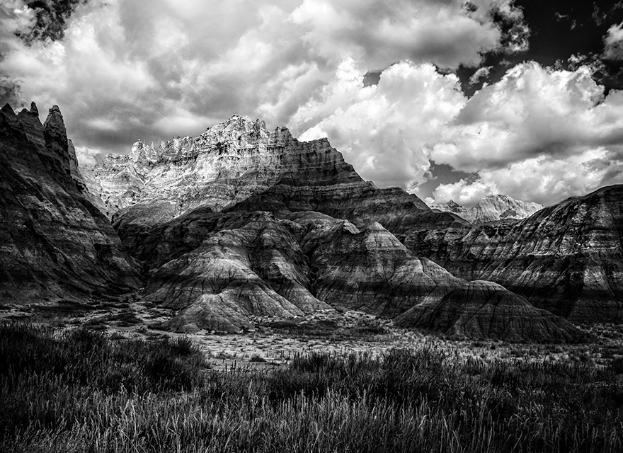 Well focused and a good depth of field. The sky is nice, too. I feel like I need a more of a focal point to rest my eye. The bright semi-circle on the right is distracting and keeps me wondering what it is. Maybe the color version would have more interest for me. |