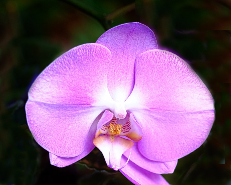 It's hard to get the entire orchid flower in focus and you did it. The soft colors are lovely and while bright, your whites are not blown out except for the flower in the background. I find the background a little too busy and distracting. I used a curves layer to darken the background and then the clone stamp to isolate the flower. I wish the lower right petal was not cut off, but it's a lovely flower. |