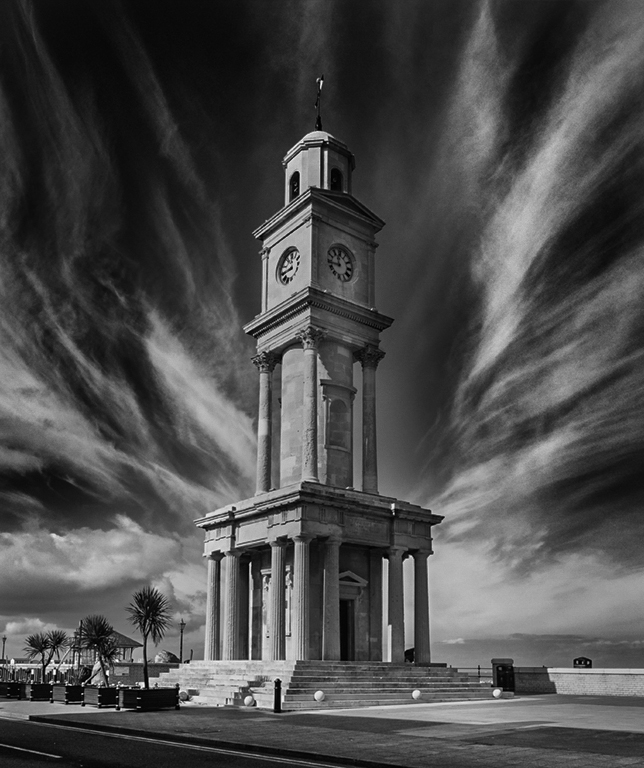 That sky is to die for and the way those clouds part around the tower fills the frame and adds tremendous impact I think Carol has stolen my thunder as I also thought there was so much more to get out of that sky I also thought that because of the extremely strong sun on the front of the tower some of the detail was blown so I opened it up in camera RAW dropped the highlights right down opened up the shadows then opened up in photoshop and did some dodging and burning on the front face and near side of the building and the sky each change on a seperate layer and dropped opacity on some of them I may have overdone the sky oh and I cropped the car out on the left,sorry for fiddling with your pic but just thought there was so much more in that fantastic sky. |