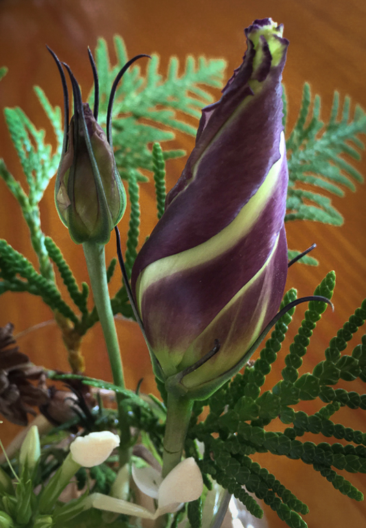I like this photo and agree with Marla thet the rose bud looks a little soft. The brightness of the white flowers and the background pulls the eye away from the rose bud. I cropped the photo in Lightroom, reduced the luminance of the wood in the background, and added a vignette. The result is in the thumbnail. I also wonder if moved to the right so the light on the rose bud is is more from the rear right. |