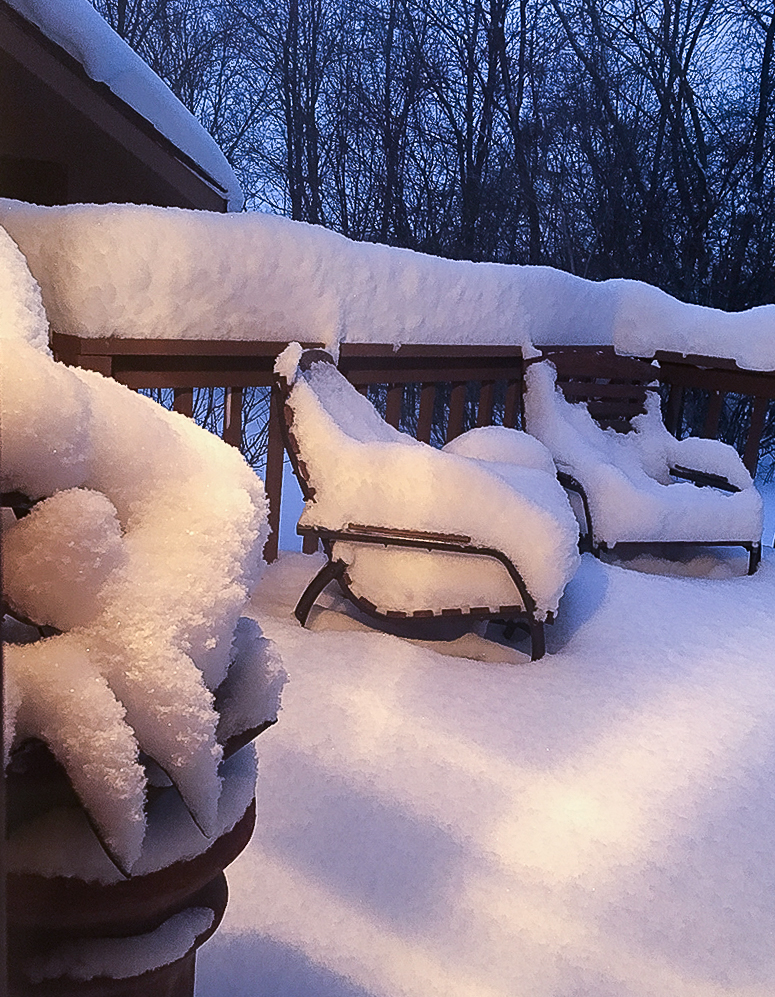 The image is sharp from front to back. I like the composition of the plant and the chairs, with the parallel line of the railing pulling it all together. I think the composition could be stronger if the chair on the right was not cut off. The lighting in the black and white handles the bright spots and shadows from the porch lights. I thought about how I would do it differently. In Lightroom I cropped the original to include the chair on the right and rather than black and white I adjusted the white balance to reduce but not eliminate the yellow in the lights and added some contrast and sharpened. You decide if you like it. |