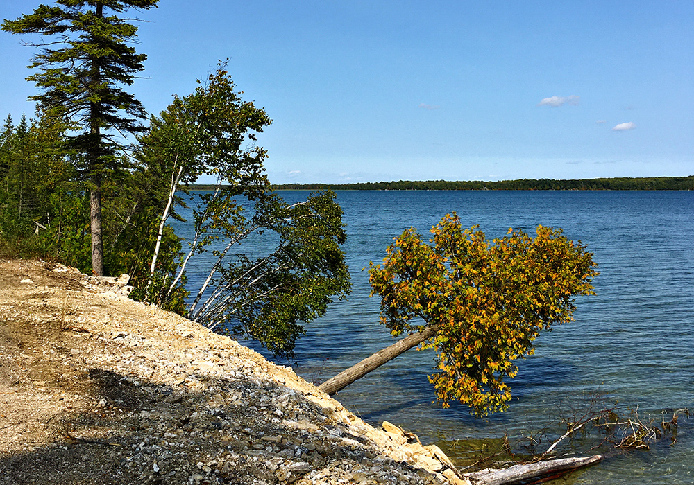 This image has great color, sharpness and composition. The lighting is also good, especially since it was taken in the middle of the day. Since the story is the falling trees I would crop out much of the top to eliminate a most of the blank sky. Losing the top of the tall tree does not impact much as long as there is enough of it to show it is tall. I gave it a try in the thumbnail. |
