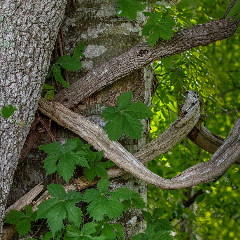 I like the colors and textures and that everything is sharp. The bottom 1/3rd does not add much so I took it into LR and cropped to a square to empathize the intertwining. I also reduced the illuminance of the background to focus the eye more on the subject. The result is in the thumbnail. See if you like it. |