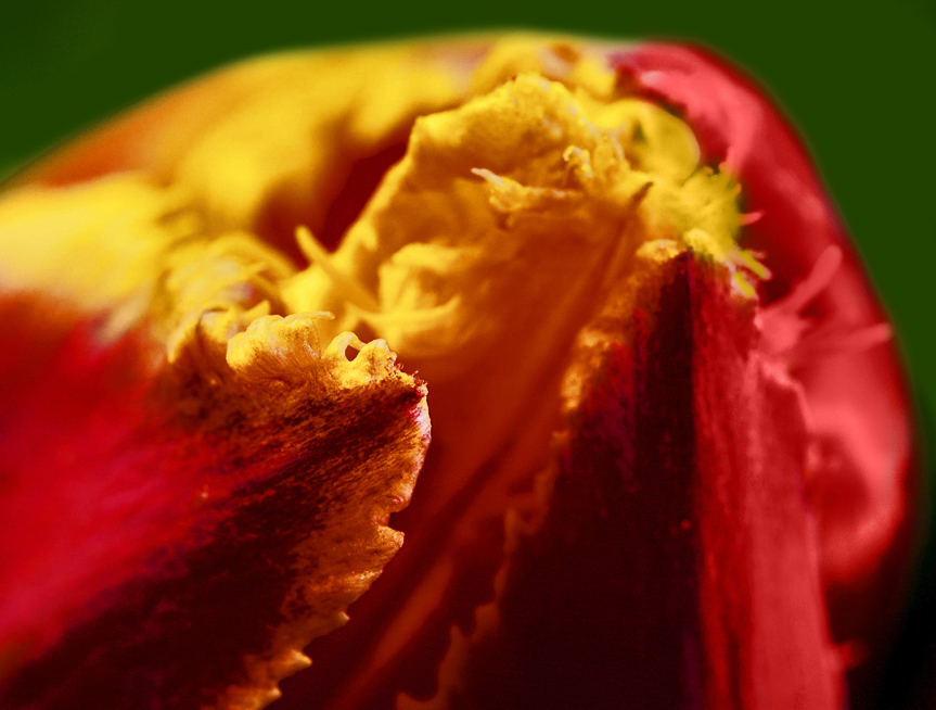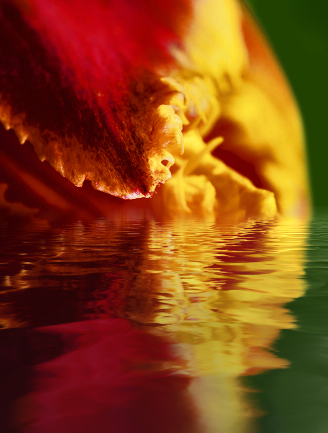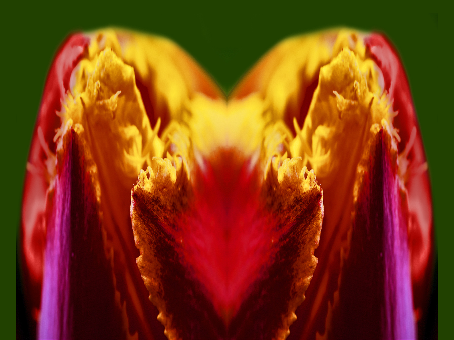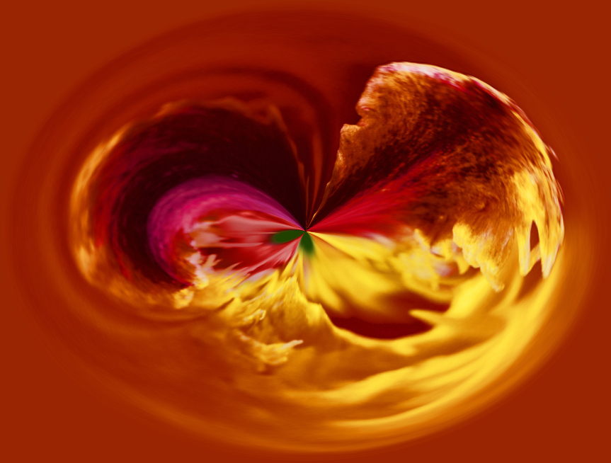 The petals coming from the left are interesting and I like the yellows and reds and green. The pink seems out of place and I would add a color blend mode layer and change the magenta to reddish. The top seems almost solarized so I would drop or brush that area. |