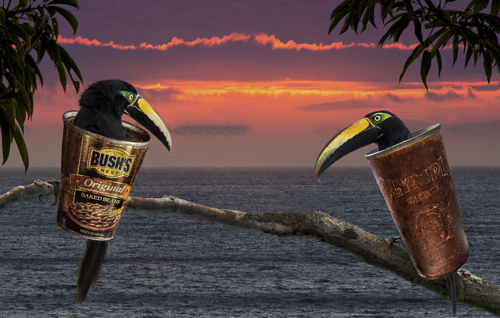 The branch touches the tree, nit picky, but it bothers me. A little content aware fill goes a long way.