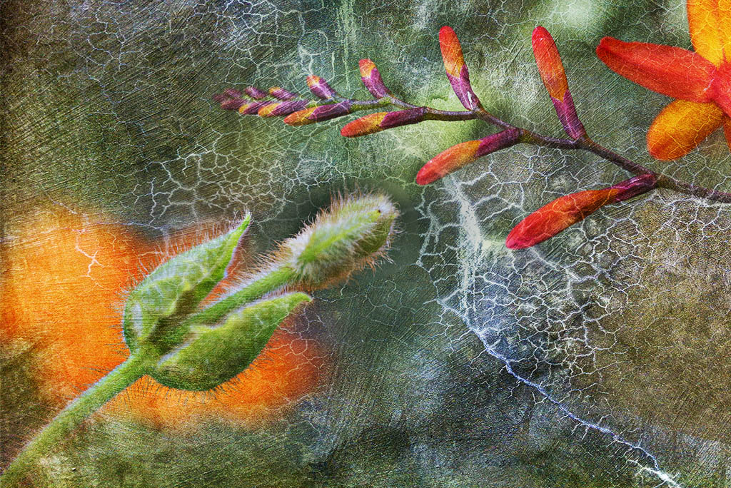 I like the use of the texture and the three images are merged well. The texture completely changes the feel on the image. I love the placement of #3 and the diagonal line of #1