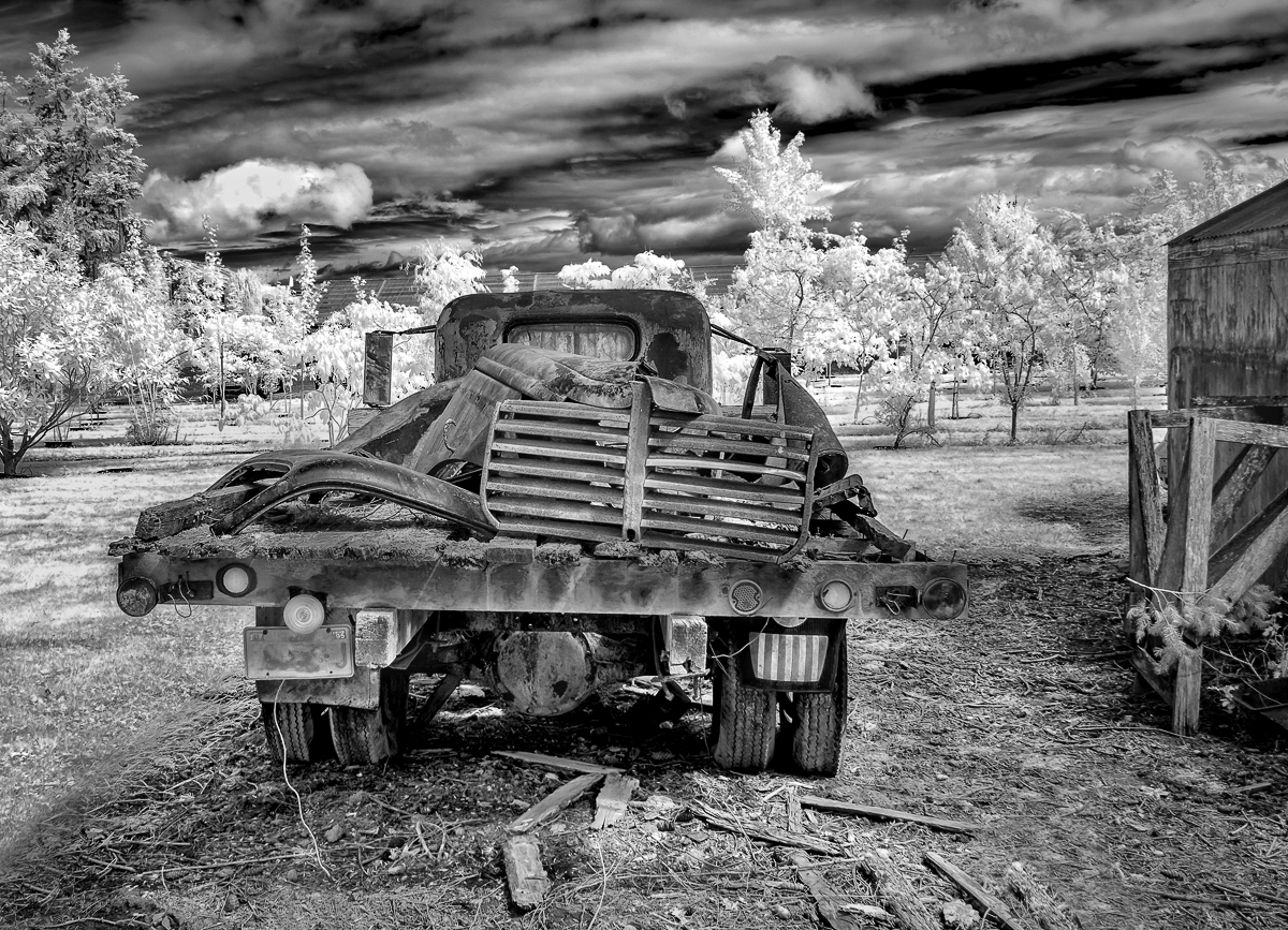 I love old trucks and this is masterfully done! I love the IR trees and the feeling of the image. You cropped it and corrected the distortion well.
