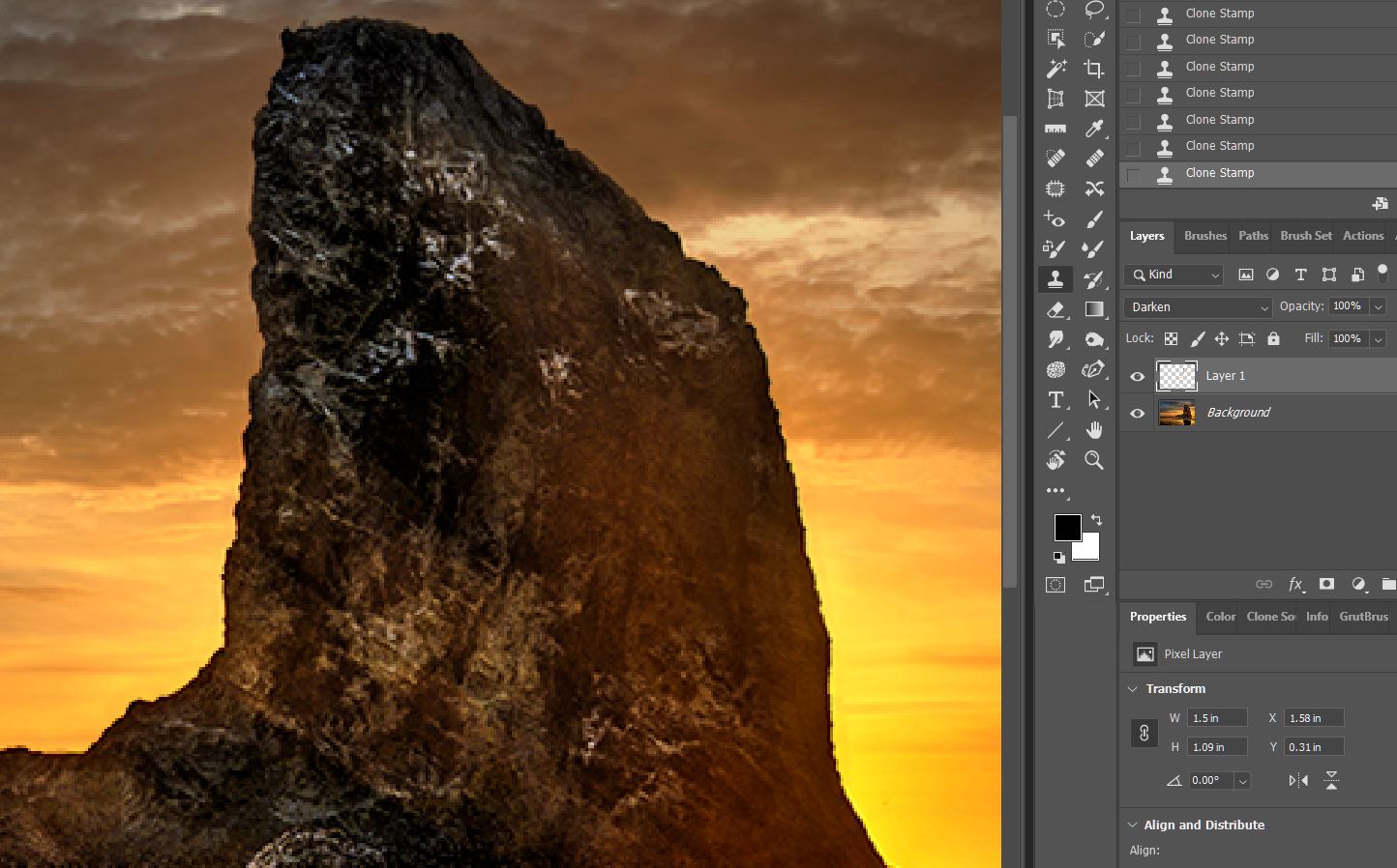 I added a blank layer, changed the blend mode to darken and clones around the stack |