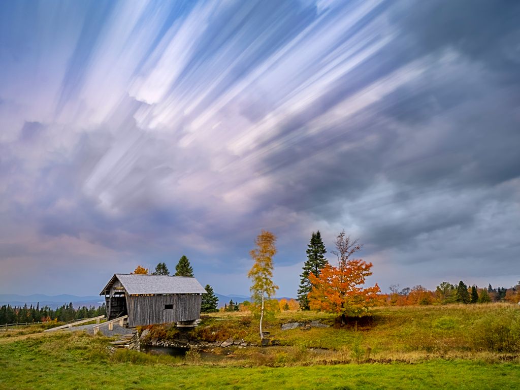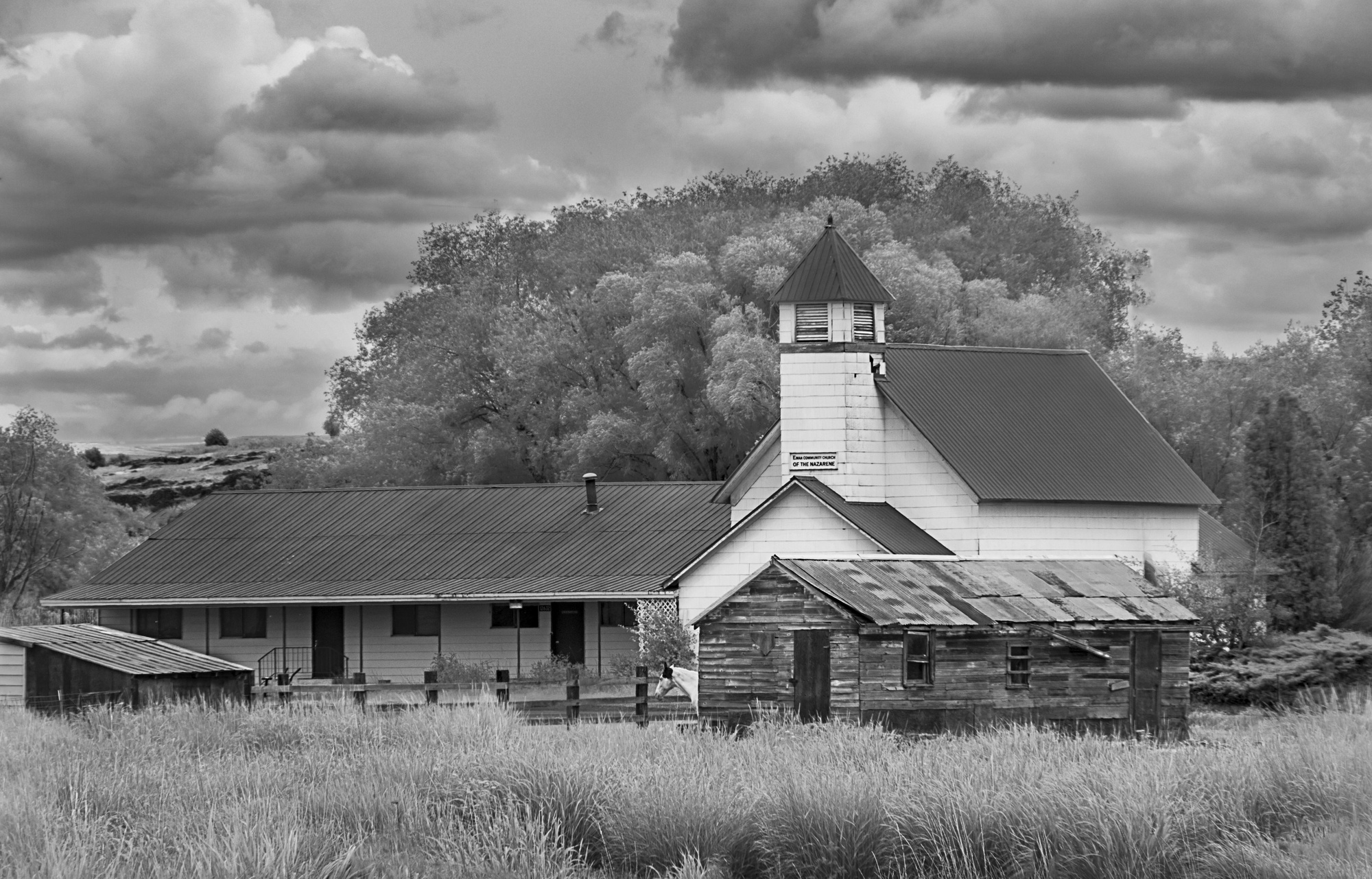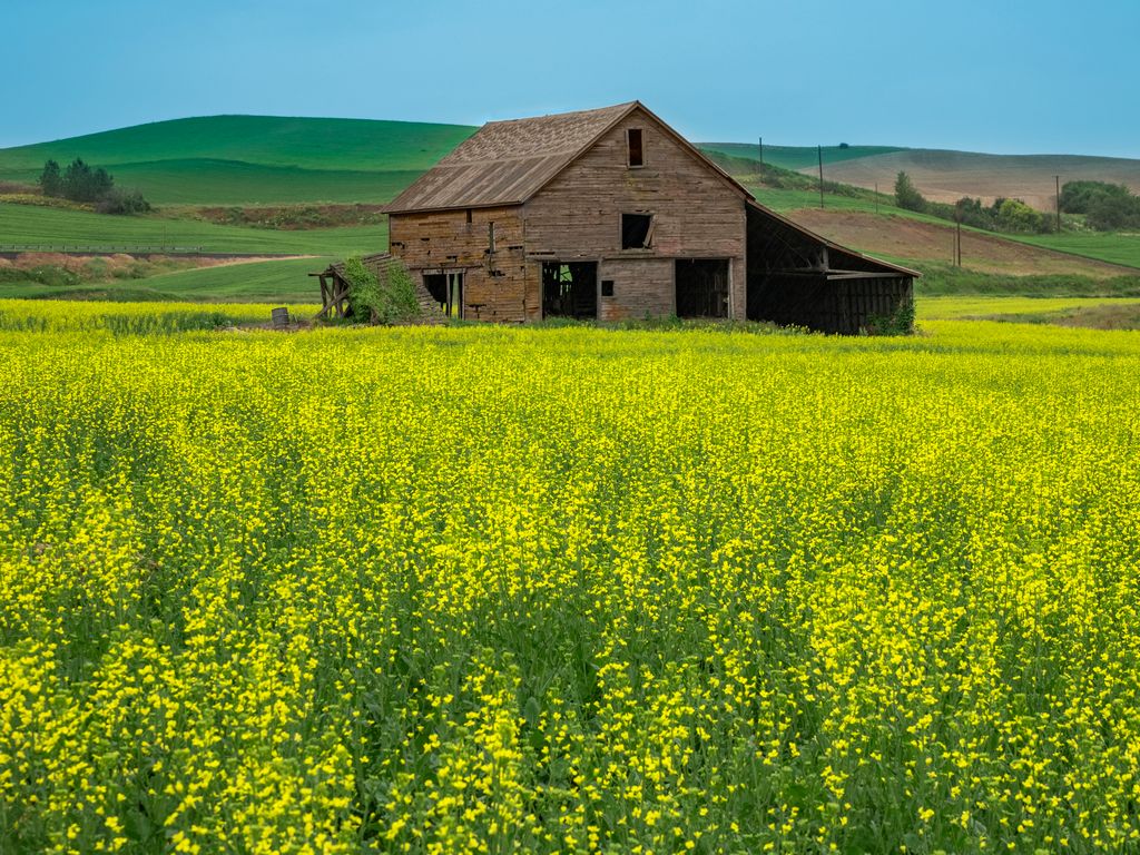 The barn seems washed out and yellow. I masked the sky and the barn and added more contrast and color to the barn.