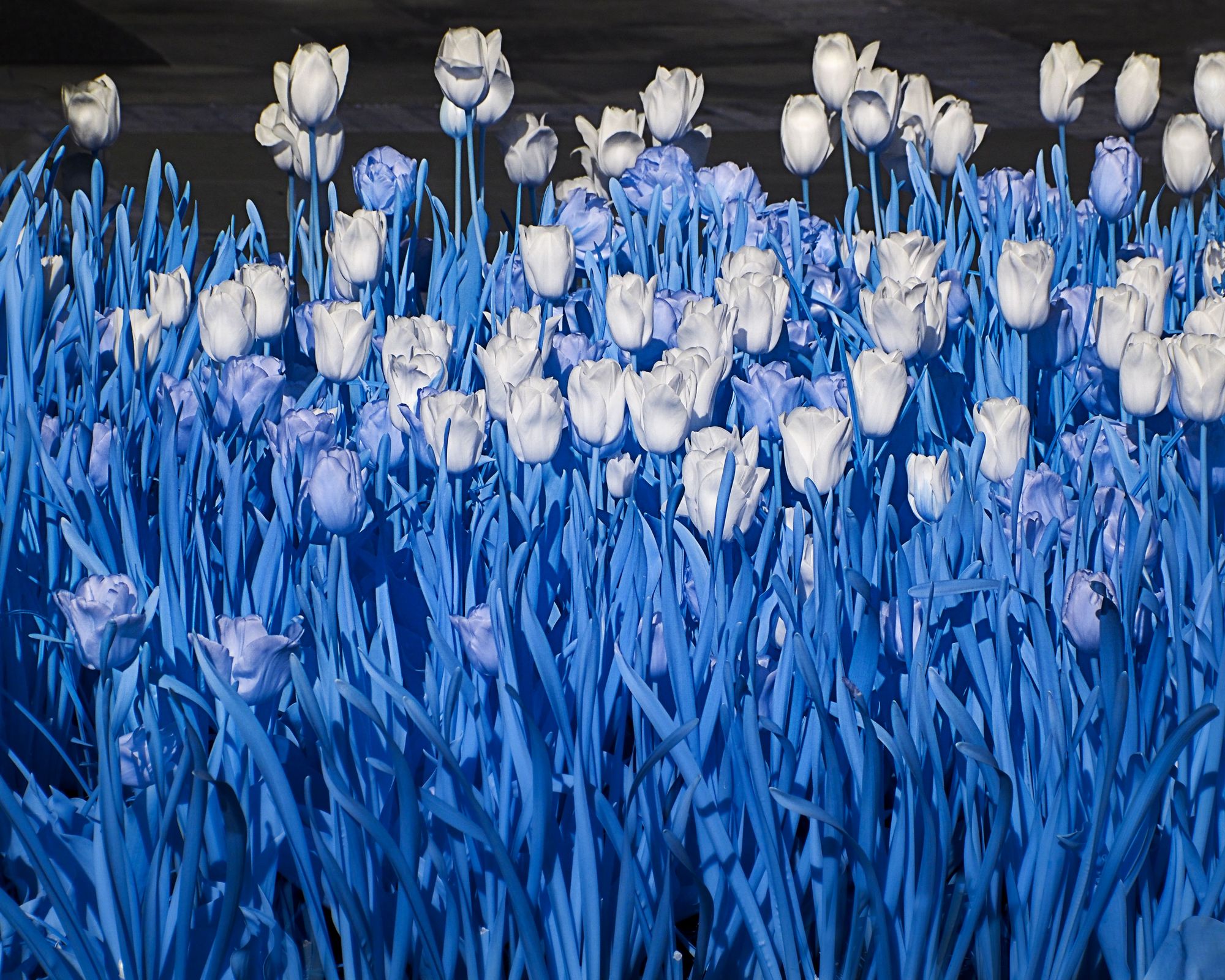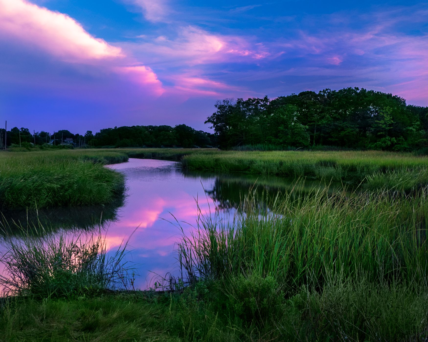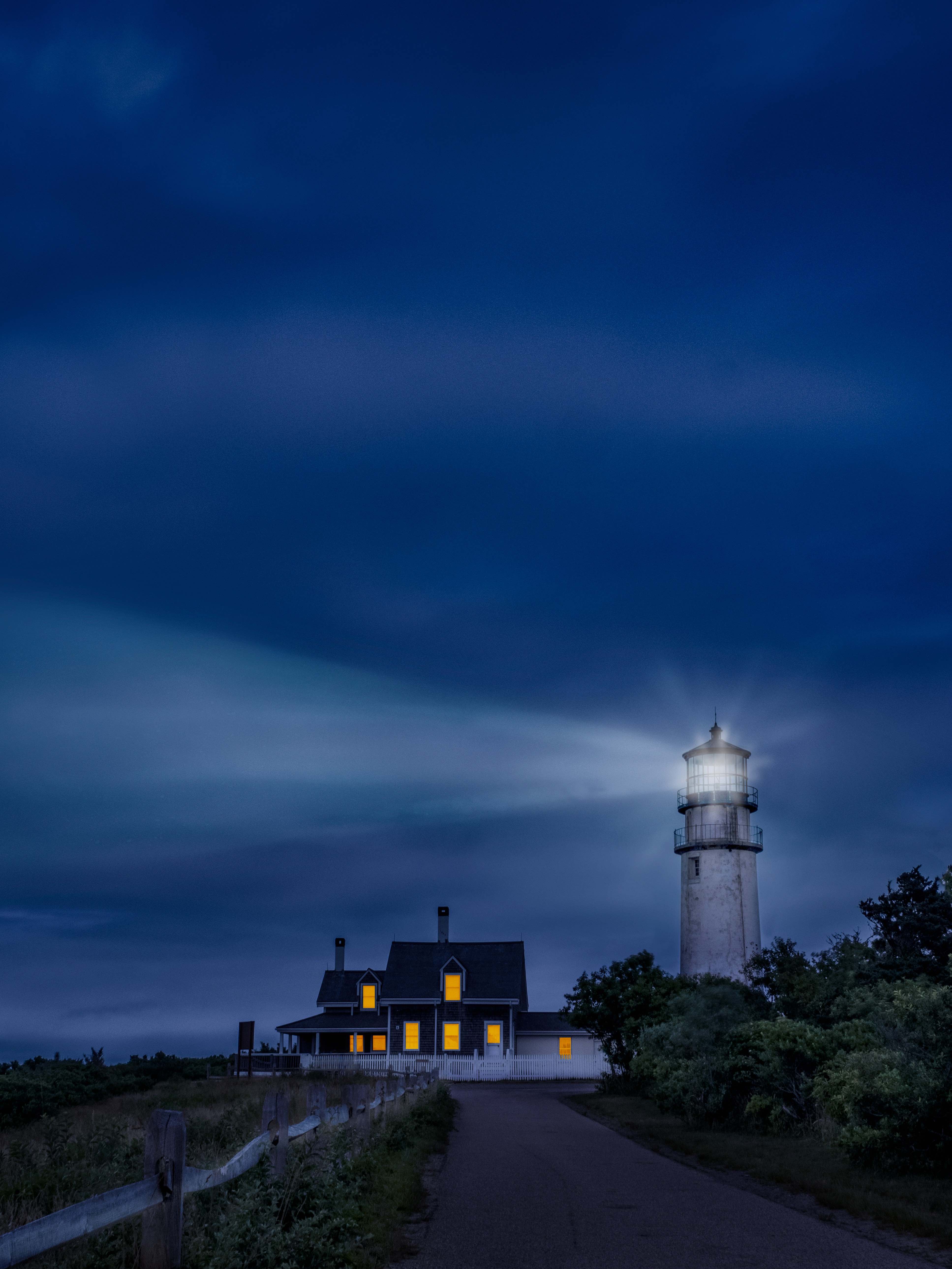 I love the warm tones against the blue sky, great time of the evening for this. The greens are like icing on the cake and the aperture chosen created those wonderful lights, shining like diamonds.