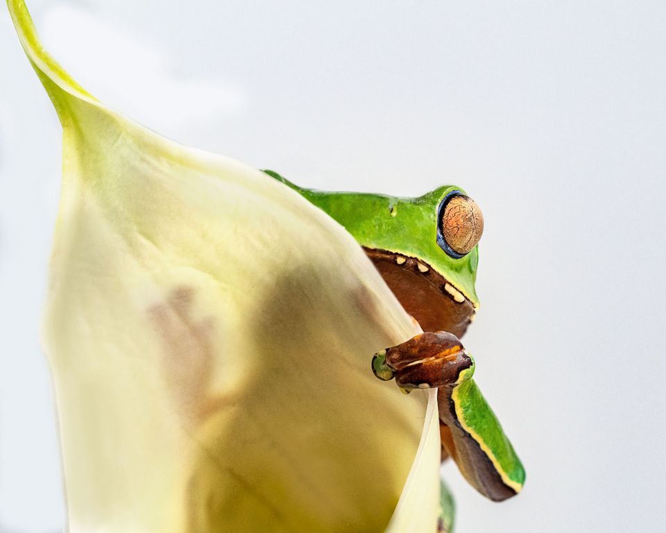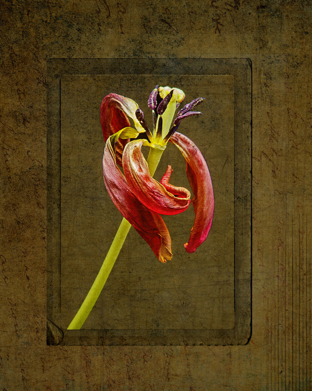 The background has a monochromatic eerie dead feeling to it with the calla lily symbolizing hope and regrowth.
