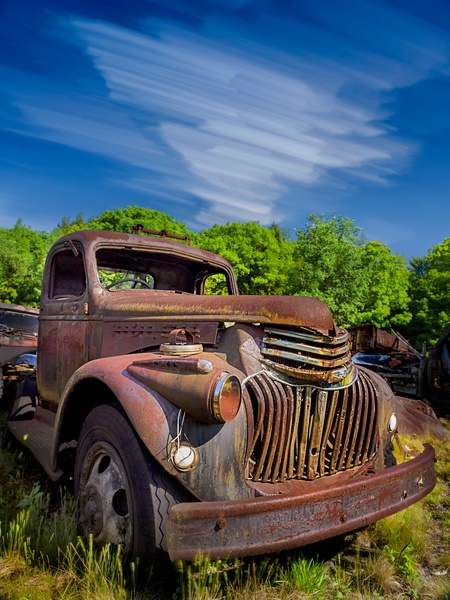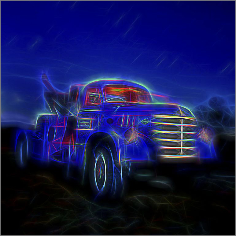 The night and added aurora are wonderful and the icm bird adds to the scene. The green truck and composition with the bird fits well.