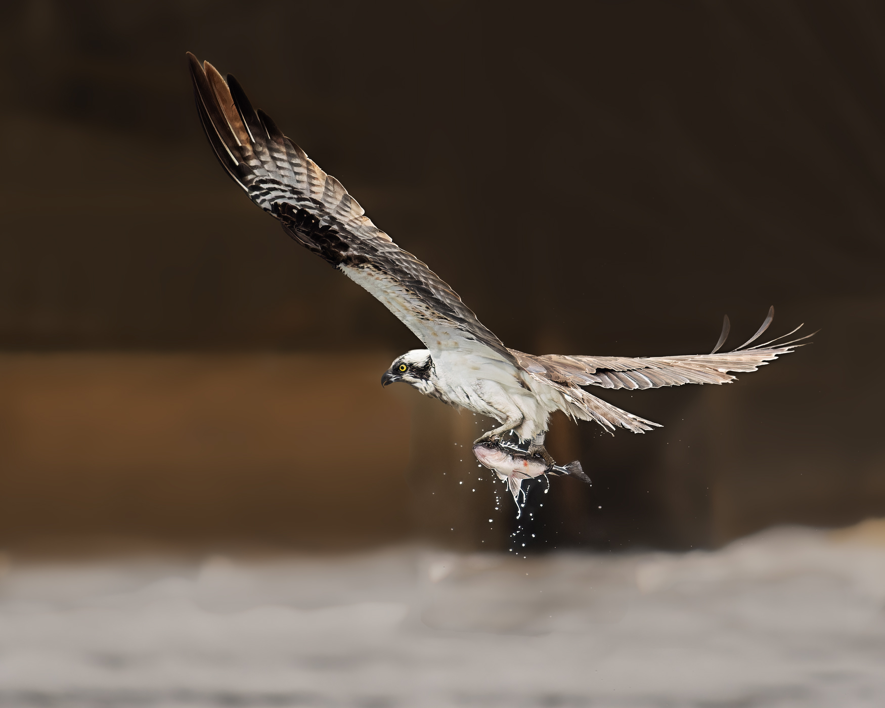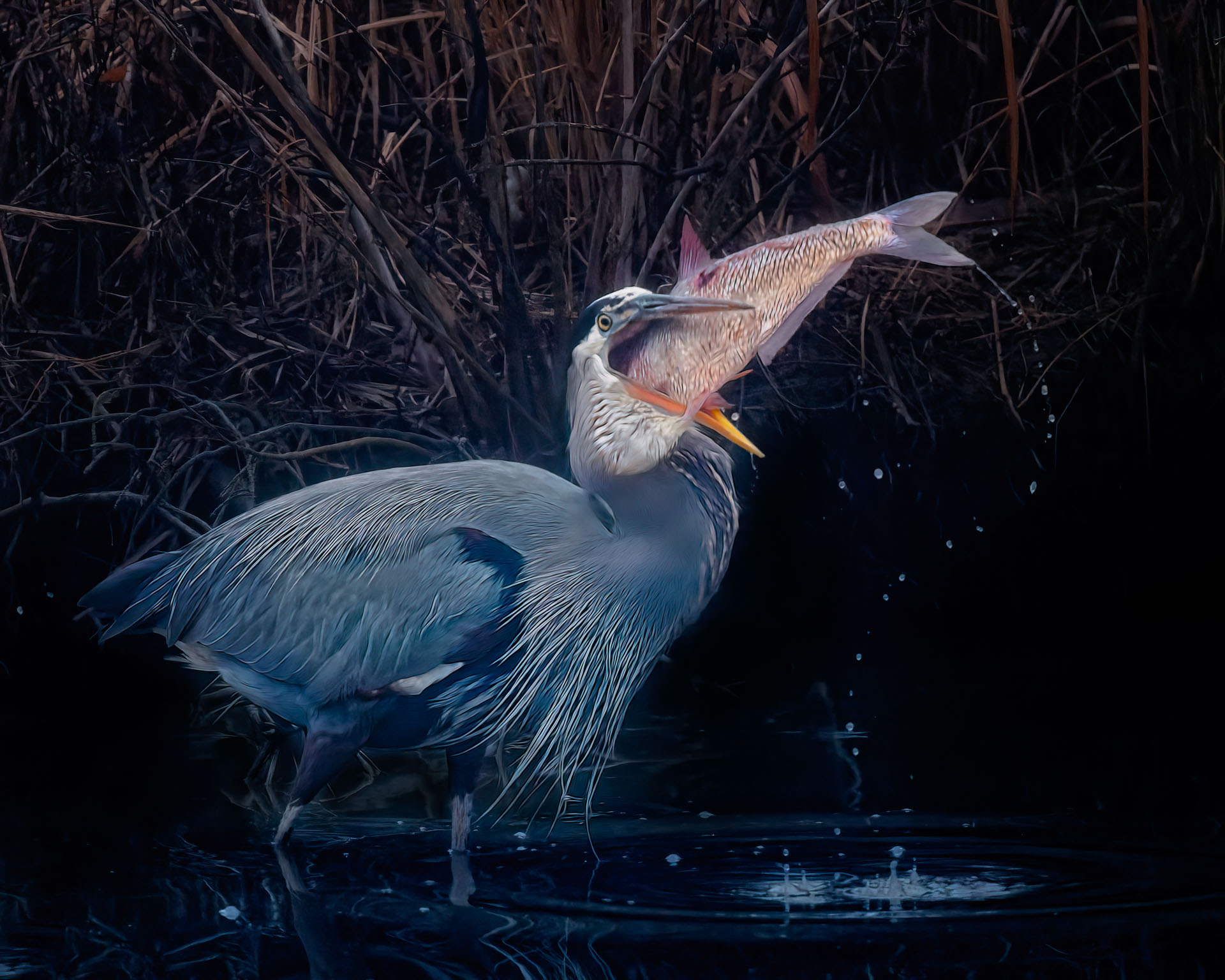 very well done. What a cool capture and then good editing with the color of the water and the pelican. This was good Story, action and texture. |