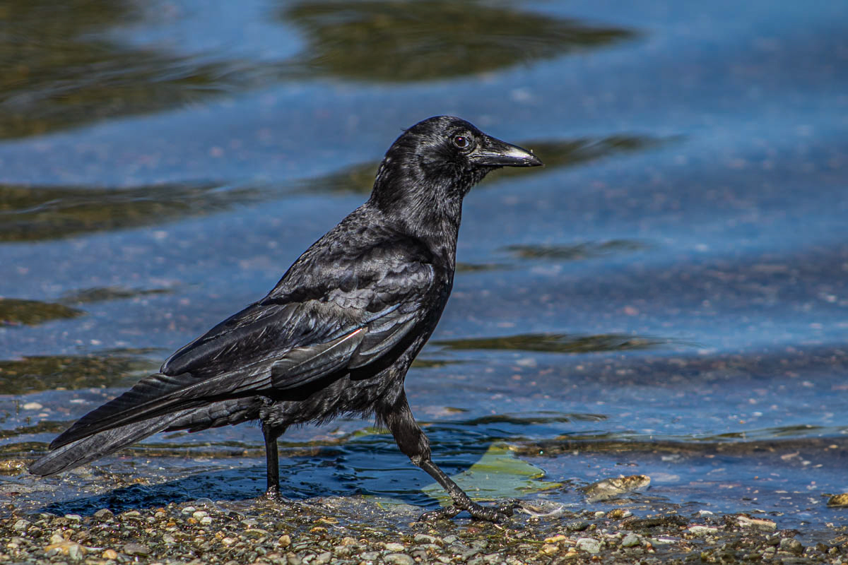 Love the detail in the crow, hard to do on a black bird. I love the low camera angle too! Very engaging!