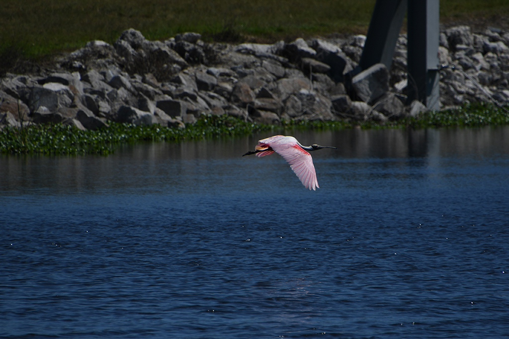 Spoonbills are wonderful! Great bird in flight. The shutter speed frooze the wings and you chose a good wing position to trip the shutter.