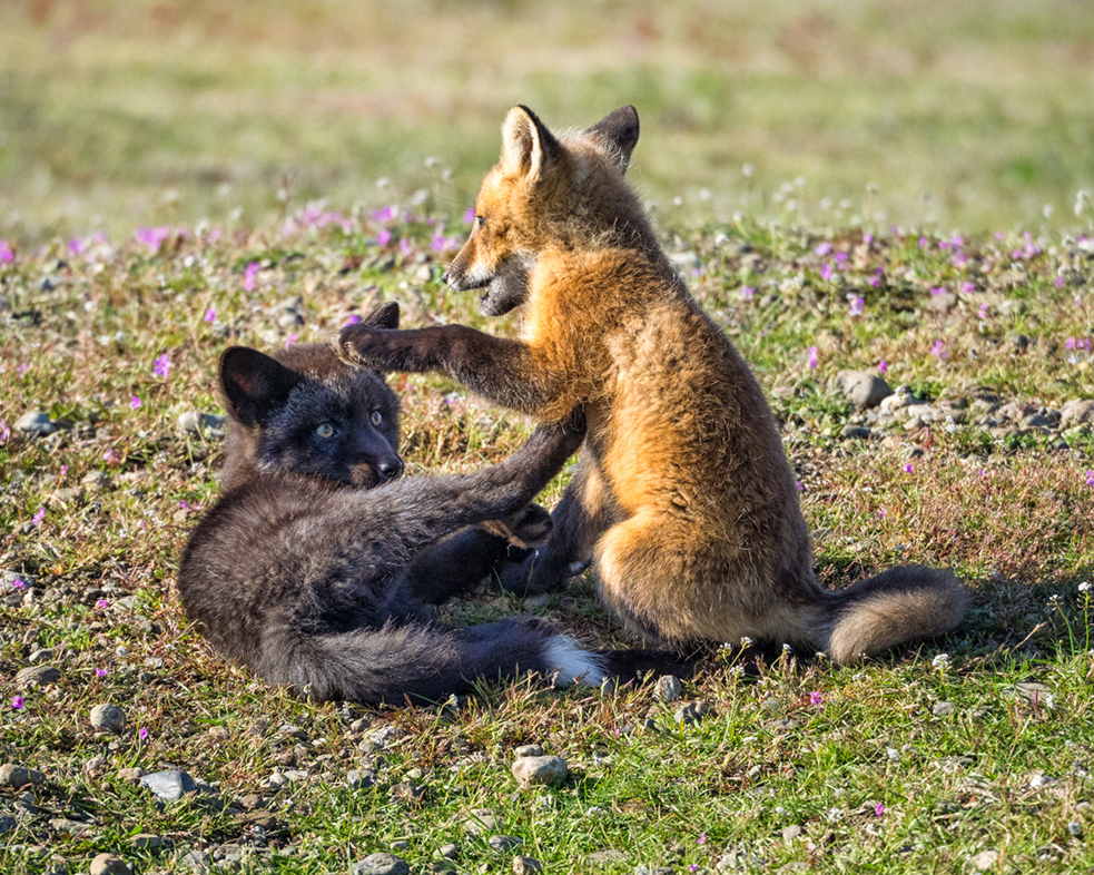Like this image a lot. The interaction and playfulness of the two kits is wonderful and I think being of 2 different colors is a bit of a plus. I felt the image lacked a little pop and adjusted the mid-tone levels a bit (see attached). |