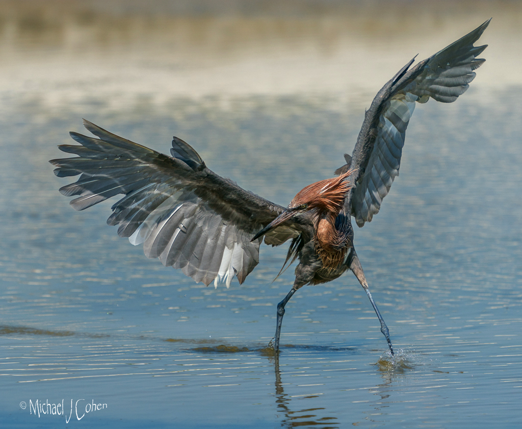 Mike, nice capture. I feel that you lightened it a bit too much and the bird is lost with the background. I tried playing with the mid-tone levels and then de-saturated the cyan water a bit and felt the this added some pop to the bird and also kept the true colors of the bird. |