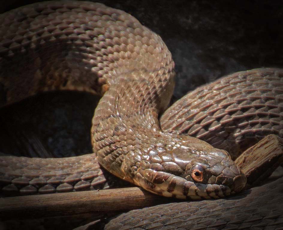 You did a great job on cropping. I felt the snake lacked a little pop in its presentation. I increased the mid-tone levels a bit and reduced the shadows a bit and added highlights. I think my rendition falls more into what Oliver was thinking but we went at it in different ways. |