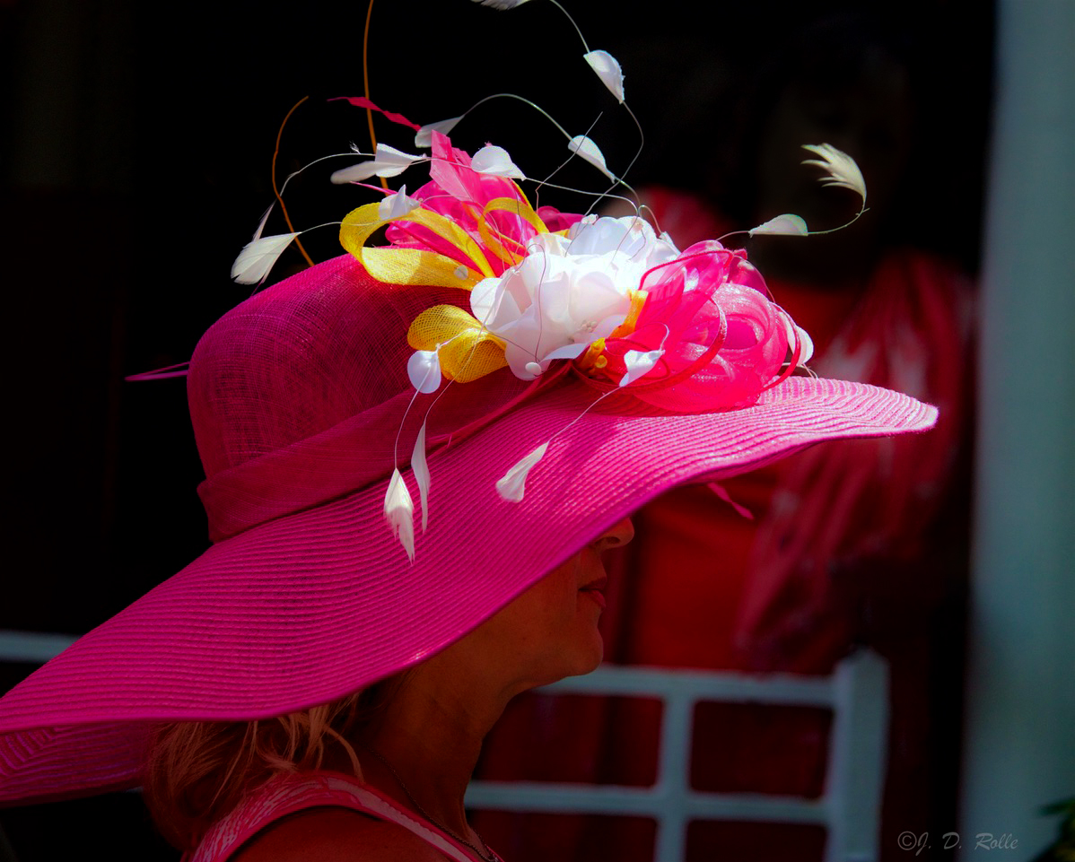 I have to agree with Alan About the background in crowds. I darkened the face area, used the lasso tool to remove the arm and purse and the touch of blue on the center left, used the healing brush on several areas and the cloning tool. By also adding highlights I was able to give the white flower on the hat some more detail. Your thoughts? |