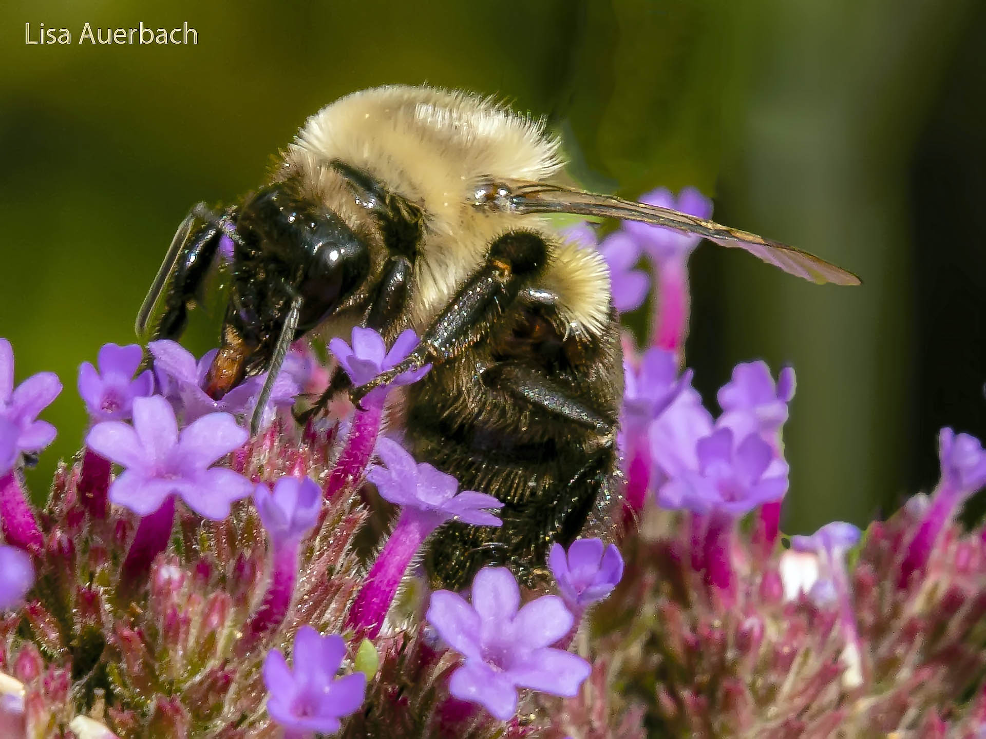 Great detail in the bee. In my opinion you might have cropped in a little to close causing loss of detail in some of the background flowers and under the wing needs some additional work as the blade of grass(?) is still showing a distracting darker green. I also think by cropping so close you created noise in the upper background. I used Imagenomics to reduce the noise that was created. With all of that said I still love the great detail of the bee. |