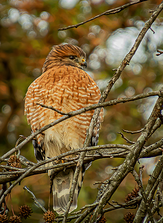 Judith - I love the pose of the red shoulder hawk and it's majestic look. I think Mike is right on with the camera focal point as the eye appears soft to me. The Program Topaz Gigapixel can help a little with that. I ran the Gigapixel - added some structure to the eye - then went to levels to add a little pop. Cropped a bit.