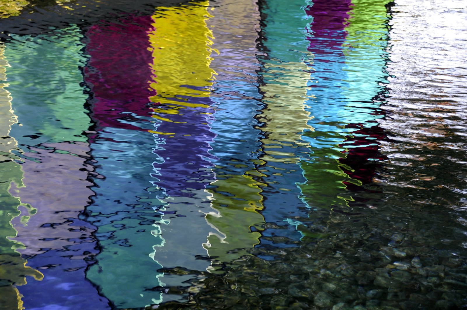 I am not sure this if this is the same image Bev uploaded from February... I sent her a few at the same time. As far as giving the "artist Credit", I usually do give it. This is a reflection of a window in a pool at the botanical gardens... I do not know who made the original window, so it is impossible to give them credit. As far as the image being blurred... this is how it was reflected..The movement of the water made it look as though it was blurry, but in reality, it is not. |