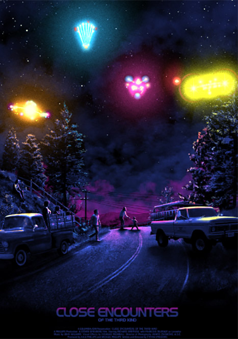 I can't help seeing a scene from Spielberg's "Close Encounters" (see below) in which people are on a highway seeing the UFO's for the first time. Your composite ranks right up there with Spielberg's image. And technology has improved to the point where you can include a GPS where Spielberg could not have imagined it. The way things are going, the distance on your highway sign might have read "light years." |
